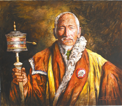 “我曾遇到過民主改革后重獲新生的翻身農(nóng)奴,他們的經(jīng)歷非常坎坷。對(duì)于他們來(lái)說(shuō),對(duì)給予他們自由的毛主席有著很深的感情。老一輩翻身農(nóng)奴為表達(dá)感激之情,便有了佩戴毛主席像章每天做祈禱的人。”索曼尼回憶著當(dāng)初繪畫《永遠(yuǎn)的懷念》這幅作品時(shí)的情景。