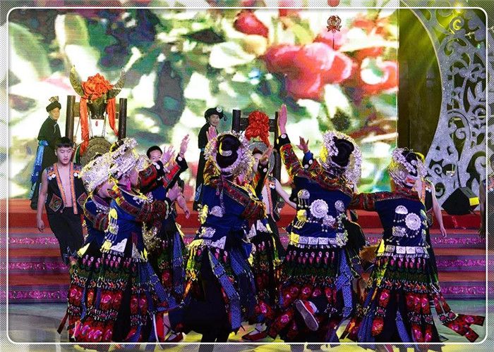 中國苗族網(wǎng)訊 2019年1月19日,由貴州省社科聯(lián)、貴州民族大學(xué)指導(dǎo),貴州省苗學(xué)會主辦,貴陽市苗學(xué)會、六盤水市苗學(xué)會、安順市苗學(xué)會、畢節(jié)市苗學(xué)會、銅仁市苗學(xué)會、黔西南州苗學(xué)會、黔東南州苗學(xué)會、黔南州苗學(xué)會、貴安新區(qū)苗學(xué)會、多彩貴州城建設(shè)經(jīng)營有限公司共同協(xié)辦的“迎新春-蝶韻楓彩鼓聲來”2019春節(jié)聯(lián)歡晚會,在貴州省貴陽市“多彩貴州城”展示中心隆重舉辦。貴州省9個州市及貴安新區(qū)苗族、布依族、侗族、土家族、彝族、仡佬族、水族、回族、白族、瑤族、壯族、毛南族、蒙古族、仫佬族、羌族、滿族等17個少數(shù)民族載歌載舞歌盛世,歡天喜地迎新春。 應(yīng)邀出席春晚的領(lǐng)導(dǎo)嘉賓有貴州省人大常委會原副主任、省苗學(xué)會老會長楊光林,以及貴州省人大常委會,貴州省社科聯(lián),貴州省民政廳,貴州省政協(xié),貴州民大,貴州省政協(xié),貴州省文化和旅游廳,貴州省總工會,貴州省文聯(lián)、貴州省人大、省委宣傳部、省民政廳,民宗委,社科聯(lián),貴州省八大民族學(xué)會的相關(guān)領(lǐng)導(dǎo)等應(yīng)邀出席并觀看演出。 春晚得到了貴州省委宣傳部領(lǐng)導(dǎo)關(guān)心,省委常委、省委宣傳部慕德貴部長對晚會專門作出重要批示,要求把春晚打造成一臺“思想性、藝術(shù)性、觀賞性統(tǒng)一的文藝晚會,豐富春節(jié)期間群眾性精神文化生活,營造歡樂、喜慶、團(tuán)結(jié)、祥和的節(jié)日氛圍”。 晚會緊扣“同心共筑中國夢,中華民族一家親”主題,圍繞共同團(tuán)結(jié)奮斗、共同繁榮發(fā)展主題,繼承和弘揚(yáng)中華民族優(yōu)秀傳統(tǒng)文化,積極展示貴州少數(shù)民族同胞改革開放40周年來翻天覆地的新變化,用少數(shù)民族原生態(tài)歌舞形式歌頌黨、歌頌祖國、歌頌民族大團(tuán)結(jié)。春晚節(jié)目,由貴州省各州市國家非遺保護(hù)節(jié)目、在中央春晚節(jié)目,由貴州省各州市國家非遺保護(hù)節(jié)目、在中央級、省市級比賽中獲獎的各民族原生態(tài)蘆笙舞、錦雞舞、銅鼓舞、板凳舞,苗族飛歌、古歌、大歌、情歌、絕技;民族盛裝走秀;非遺文化展示等26個節(jié)目組成。 晚會由240位貴州各地苗族演員,50位苗族、布依族、侗族、仡佬族、彝族、土家族、回族等17個少數(shù)民族演員,在主持人的開場白介紹中,手持燈花、衣著盛裝在鼓點(diǎn)笙曲中步入會場。 接著,被國內(nèi)外譽(yù)為“東方迪斯科”的黔東南州臺江《反排木鼓舞》拉開笙鼓迎春的序幕,雷山國家級非遺節(jié)目《掌坳銅鼓舞》、《錦雞舞》,貴陽市花溪區(qū)《花鼓舞》、貴安新區(qū)原生態(tài)蘆笙舞《花坡韻》、黔南州《鼓龍鼓虎-長衫龍》、兒童舞蹈《跺月亮》、畢節(jié)市納雍縣蘆笙舞《滾山珠》、凱里原生態(tài)合唱《春之歌》、安順留守兒童合唱團(tuán)《又見桃花開》、金竹樂隊(duì)蘆笙組合《酒歌》、銅仁市絕技《紙上飛仙》、黔西南州《板凳舞》等,一個個節(jié)目精彩絕倫、美輪美奐,舞出少數(shù)民族同胞“美起來、笑起來、富起來、強(qiáng)起來”的精神風(fēng)貌、音容笑貌。最后,貴州省17個世居少數(shù)民族240名演員齊唱《愛我中華》,在“五十六個民族五十六朵花,五十六個兄弟姐妹是一家”的歌聲中把整臺晚會推向高潮,拉下帷幕。 此次春晚民族文化濃厚、明星歌手薈萃、演員陣容龐 此次春晚民族文化濃厚、明星歌手薈萃、演員陣容龐大、節(jié)目精彩絕倫。這些節(jié)目,涵蓋了東部方言、中部方言和西部方言各民族支系。遍及黔東南州、黔西南州、黔南州、貴陽市、安順市、畢節(jié)市、六盤水市、銅仁市和貴安新區(qū)。老藝術(shù)家榜香、青年歌手阿幼朵、潘興周、雷艷、楊一方、阿娜丹、歐桑、楊佳茜、楊祖桃、楊思雨、楊廷勇、吳敏成、阿蕾倩、余秋陽、阿依三姐妹、谷阿斯組合、阿依山娃組合等20多名少數(shù)民族歌星紛紛登臺獻(xiàn)藝,演員達(dá)300余人。 貴州省人大常委會原副主任、貴州省苗學(xué)會老會長楊光林說,春晚的舉辦,有利于提高民族同胞的戰(zhàn)斗力、凝聚力、感召力!春晚牢牢把握了“百姓富、生態(tài)美”兩條底線,通過晚會形式,吹響了少數(shù)民族同胞在黨中央和貴州省委、省政府的堅(jiān)強(qiáng)領(lǐng)導(dǎo)下,致力于決戰(zhàn)脫貧攻堅(jiān),決勝同步小康、實(shí)現(xiàn)鄉(xiāng)村振興的號角。是號召大家參與國家實(shí)施的“鄉(xiāng)村振興、脫貧攻堅(jiān)”任務(wù),努力實(shí)現(xiàn)貴州人民2020年和全國人民同步實(shí)現(xiàn)小康及全國人民正在努力實(shí)現(xiàn)的“中國夢”作出貢獻(xiàn)的動員令! 晚會當(dāng)天,春晚組委會主任、貴州省苗學(xué)會常務(wù)副會長張榮斌介紹:“迎新春-蝶韻楓彩鼓聲來”2019春節(jié)聯(lián)歡晚會,是推進(jìn)貴州省委、政府明確提出的“全力打造多彩貴州民族特色文化強(qiáng)省”戰(zhàn)略定位的實(shí)際行動;是著力推出民族民間文化精品,提升“山地公園省,多彩貴州風(fēng)”影響力和美譽(yù)度的良好平臺;是增強(qiáng)少數(shù)民族同胞文化自信,打造“山地公園省,多彩貴州風(fēng)”的靚麗名片和文化品牌;是全省少數(shù)