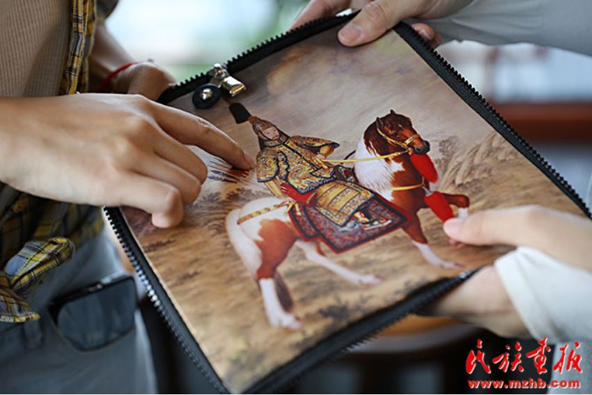 游客對(duì)民族工藝品愛(ài)不釋手。