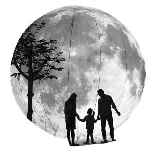 一家三口在景觀月亮下留影,慶祝中秋佳節(jié)。董乃德攝