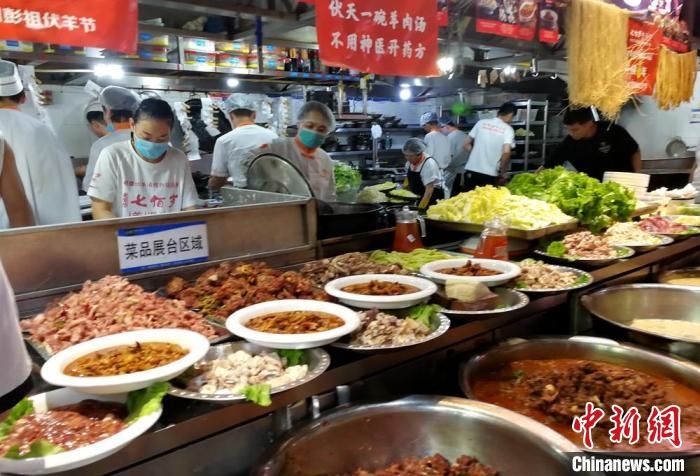 記者走訪徐州市區(qū)大街小巷發(fā)現(xiàn),各大餐館、飯店提前備足了貨源,店方更是拉起橫幅,布置花籃,紛紛推出特色伏羊菜品迎賓納客。11日中午,徐州七百歲羊肉館濱湖店店長(zhǎng)張輝介紹,飯店在伏羊節(jié)期間預(yù)計(jì)每天要用掉大概15只羊的鮮羊肉。店內(nèi)包間、大廳空桌早在一周前就被預(yù)訂滿。當(dāng)天一早,附近很多市民就帶著鍋碗來(lái)店里打羊肉湯。中午,由于吃伏羊的客人較多,一樓大廳的餐位已經(jīng)翻臺(tái)多次?!胺蚬?jié)第一天,單獨(dú)他們這一個(gè)店面最少接待顧客50桌近600人次。