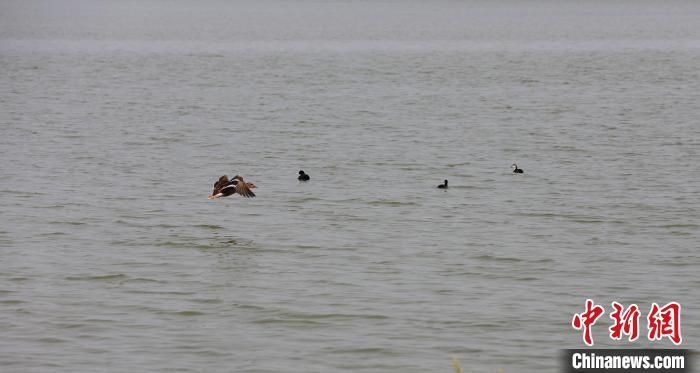 鳥兒在南宮湖濕地公園嬉戲?!√锿?攝