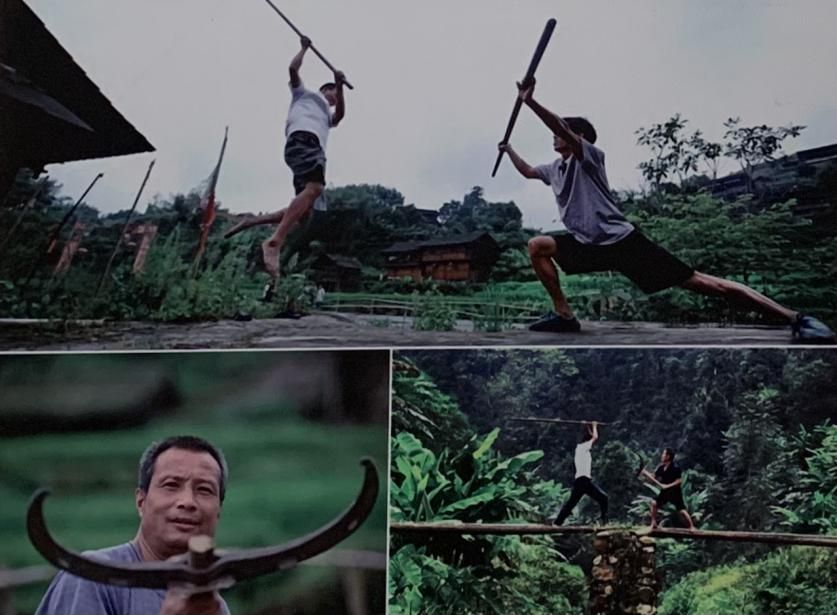 貴州天柱縣甘溪侗寨人人自幼習(xí)武,身懷絕技,家里的鋤頭、釘耙、板凳、柴刀等都是他們防身的武器,其地域流行的六家拳、洪門棍套路更是享譽天下。月牙鏜、鐵尺都是獨具特色的武術(shù)器械。
