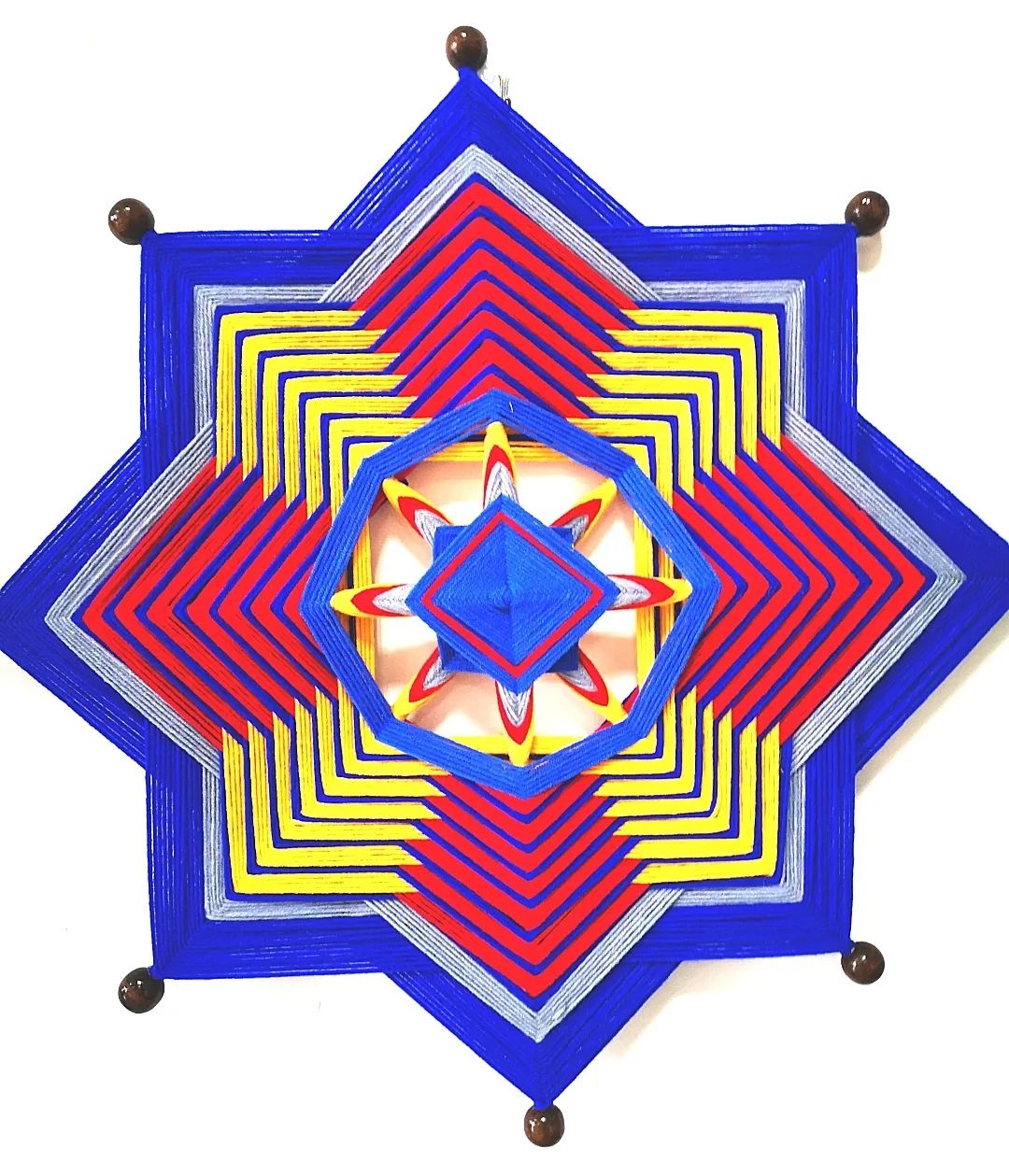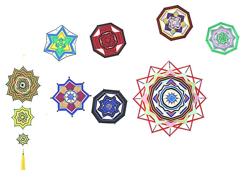 科爾沁繩編設(shè)計(jì)精巧,尤其擅長(zhǎng)表現(xiàn)游牧民族生活之美, 具有地域民族風(fēng)情之美,繩結(jié)造型多為上下一致、左右對(duì)稱(chēng)、正反相同、首尾銜接。一根彩繩通過(guò)綰、結(jié)、穿、纏、繞、編、抽等多種工藝技巧,按照章法循環(huán)有致、連綿不斷編制而成。近代由于蒙漢文化的融合,繩編技法也開(kāi)始相通了。