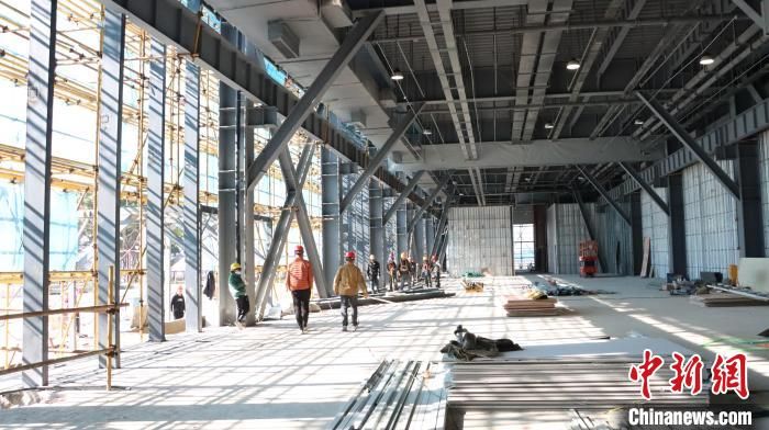 圖為中國(guó)船政文化博物館新館內(nèi)部展陳正在施工中?!⊥鯐韵肌z