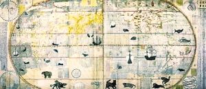 李之藻年輕時(shí)就對(duì)實(shí)學(xué)頗感興趣,曾自行繪制過(guò)明朝兩京十三省的地圖。見(jiàn)到利瑪竇用西法繪制的世界地圖后,李之藻敏感地意識(shí)到,這個(gè)地圖的繪制方法與中國(guó)傳統(tǒng)的“計(jì)里畫方”方法不同,是“取天文以準(zhǔn)地度”,用經(jīng)緯度確定地理方位。對(duì)利瑪竇的學(xué)問(wèn)一見(jiàn)而傾心的李之藻,每天都要到利瑪竇的公寓學(xué)習(xí)地理、天文知識(shí),每次都要花上四五個(gè)小時(shí)。1602年,李之藻與利瑪竇結(jié)合中西繪圖技術(shù),合作繪制了一版世界地圖《坤輿萬(wàn)國(guó)全圖》,這幅地圖改變了當(dāng)時(shí)通行的將歐洲居于地圖中央的西方繪圖格局,把子午線向西移動(dòng)170度,從而使東亞的中國(guó)居于地圖的中央,并且全圖標(biāo)上了詳細(xì)的漢字標(biāo)識(shí),這是中國(guó)最早的世界地圖。