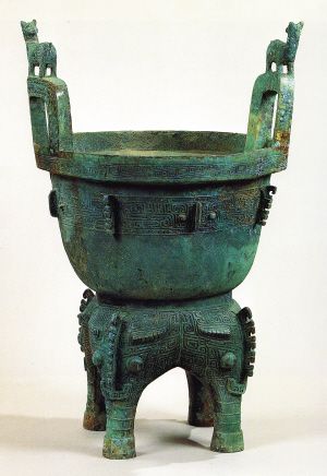 銅器的重要性不僅在其大小,更在其如何使用。殷墟青銅器的種類與使用方法,在繼承傳統(tǒng)的基礎(chǔ)之上,蘊(yùn)含著豐富的內(nèi)容。商王朝早期階段已經(jīng)大量鑄鼎、尊、斝、鬲、爵,經(jīng)過商中期的發(fā)展,到殷墟時(shí)期,以青銅容器為核心的禮制體系得以完備,突出表現(xiàn)在觚、爵作為酒器配對(duì)登場(chǎng)。殷墟發(fā)現(xiàn)的墓葬,死者等級(jí)越高,觚、爵套數(shù)越多,形成以觚、爵為核心,加以食器、樂器、禮器的組合,到西周才演變?yōu)橐远ΑⅢ仁称鳛橹匦牡慕M合。