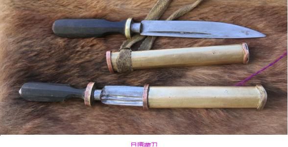 旦嘎藏刀在西藏是比較有名的,刀身是以鋼材鍛制而成,通過手工精心加工,刀刃鋒利,刀面凈光。規(guī)格為短刀和小刀兩種。短刀約四十厘米左右,小刀則僅有十幾厘米長,具有很強(qiáng)的地方特色,主要是防身和日常生活中吃肉為主。刀把多用以牛角或牛骨制成,刀鞘多數(shù)是包黃銅、白銅,還有白銀,上面一般沒有圖案,也沒有鑲嵌各種寶石、鍍金等,顯得很別致。