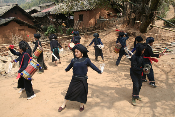 在雙江,有一個(gè)偏遠(yuǎn)的小山村,因這里“出產(chǎn)”蜂桶鼓和蜂桶鼓舞而遠(yuǎn)近聞名,它就是邦丙鄉(xiāng)南直村。蜂桶鼓和蜂桶鼓舞是雙江布朗人的獨(dú)門絕活,完全屬于雙江布朗人。蜂桶鼓源于它的形狀像民間養(yǎng)蜂的蜂桶而得名,而蜂桶鼓的由來(lái)卻充滿了神秘的傳奇色彩。相傳: