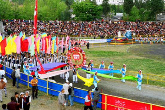 三月街又名“觀音市”,是云南白族盛大的節(jié)日和街期。每年夏歷三月十五至二十日在大理城西的點蒼山腳下舉行。最初它帶有宗教活動色彩,后來逐漸變?yōu)橐粋€盛大的物資交流會。明清時期,四川、西藏、江南各省都有商人到此貿(mào)易。它不僅是個交換場所,還是表演各種舞蹈和賽馬、競技的樂園。中華人民共和國成立后,三月街已發(fā)展成滇西各族人民一年一度繁榮的物資交流和民族體育文藝大會,對加強(qiáng)民族團(tuán)結(jié)、促進(jìn)民族間的經(jīng)濟(jì)文化交流,起了積極的作用。