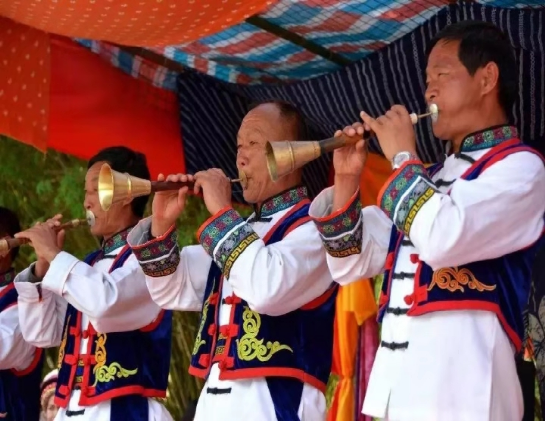 洱源民間有“不吹嗩吶不為喜”的說(shuō)法,“松鶴人活要吹嗩吶,死也要吹嗩吶,無(wú)論悲喜都要吹嗩吶”。