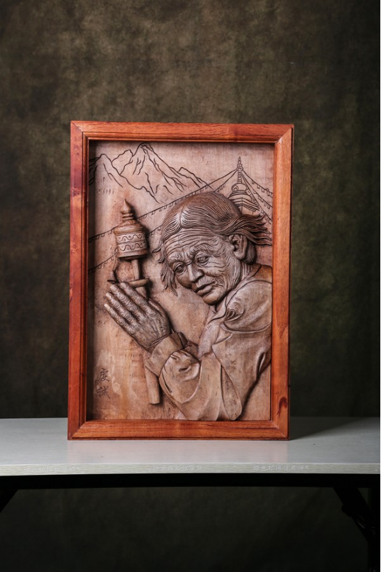 《門神》、《福滿門》這是劍川木雕在繼承傳統(tǒng)基礎上,對傳統(tǒng)的一種大膽嘗試性的發(fā)揚創(chuàng)作。這些作品的特點是,既保留了嫻熟的傳統(tǒng)木雕技藝,只是通過巧妙的組合,在現(xiàn)成的古老大門上雕出“門神”或用舊門框作為木雕作品的邊框,從而產(chǎn)生一種新的意趣,這種創(chuàng)意很適合當下都市的審美要求,也是劍川木雕未來發(fā)展中很值得提倡的新思路。木雕復制《張勝溫畫卷》