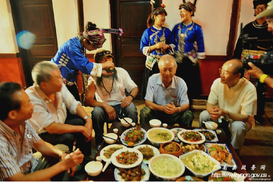 西行音樂公路之旅在享用土司盛宴——“三滴水”后,劇組被壯民族創(chuàng)造的具有深厚民族文化貫穿其中的民族飲食文化所折服,被壯民族熱情好客的情緒所感染。西行音樂公路之旅執(zhí)行導(dǎo)演劉暢說,北京有滿漢全席,想不到在廣南這個地方也有壯族自己的“滿漢全席”,他說,我和我的小朋友們都驚呆了!
