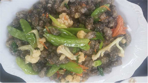 烹制蚵柳,先要挑選好個(gè)肥形大的鮮蚵,用心幾遍洗凈,再用篩細(xì)的地瓜粉薄薄拌勻,務(wù)求每只蚵仔獨(dú)立成團(tuán),再兜在漏勺里到滾開(kāi)的水里焯一下即起來(lái),再攤放有竹篩簸里晾干瀝水一個(gè)晚上。第二天中午烹制,先把油燒熱,倒入生姜末過(guò)油,再依次倒入花菜、荷蘭豆、紅蘿卜絲、芫荽等“菜腳”與鹽、雞粉、料酒、蠔油、胡椒粉、醋等佐料一并翻炒,菜蔬生汁,試嘗咸淡,再倒入已備好的蚵仔團(tuán)翻炒,只需幾下,便已熟透,即可裝盤(pán)。