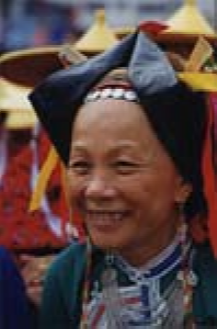 惠東女服飾文化源遠流長,其形成、發(fā)展過程一直是中外人類學、民俗學專家關(guān)注的課題。其來源有種種傳說,目前尚無定論。據(jù)史料記載,清代中后期,惠東婦女上穿黑色或紫色長袖挖襟衫,下穿黑色大折褲。衣長、胸、腰背寬闊,下沿稍呈弧形外展,與清代流行的“大夫衫”(長式挖襟衫)類似。不同的是袖口偏窄,袖子接長,故名“接袖衫”又名“卷袖衫”接袖的用意十分有趣,為的是讓新娘入洞房時提起長袖以遮掩一臉羞紅;過了3日,才在長袖一半處翻卷逢住固定。到了清未“接袖衫”各部分略為收縮,衣沿弧度加長,臂圍寬度加闊并向外彎展,腰圍處的中式紐攀減少,兩個連在一起,袖口繞藍布邊。領(lǐng)圍上刺繡圖案由簡變繁,領(lǐng)根下方形色布改為三角形。胸、背中線兩側(cè)綴做兩塊方形黑色、深褐色綢布,其四邊各鑲接一塊三色形色布,改稱“綴做衫”。褲子為“大折褲”又名“大筒褲”,俗稱“漢裝褲”。褲一般用黑色布,也有用藍色的。褲腳寬約1.2尺,褲頭約2尺,縫一道5寸的藍色布邊。其樣式從清代中后期至今沒有多大變化,惟質(zhì)料由舊時用粗布,今天改為通用黑綢布?;輺|女服飾,歷來重視腰以上部分,特別以頭飾最為突出,花樣繁多,不同場合、不同年齡的頭飾有明顯區(qū)別。