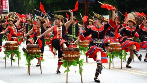 糧食得到了豐收,鼓成了瑤民的功臣,成了瑤民心中的神。后來(lái)這被瑤家人戲稱為“趕猴鼓”的打鼓方式就慢慢演變成為各大小節(jié)日的表演節(jié)目。于是趕猴鼓成了瑤民住在山中的神鼓,流傳至今便有了今日的瑤山鼓。