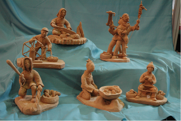 泥塑藝術(shù)是我國一種古老常見的民間藝術(shù)。它以泥土為原料,以手工捏制成形,或素或彩,以人物、動(dòng)物為主。不同的民間風(fēng)俗,流傳著很多動(dòng)人的傳說故事,這些構(gòu)成了泥塑藝術(shù)的精神內(nèi)核。民間泥塑的用途主要有祈子延壽、納福招財(cái)、驅(qū)邪避災(zāi)和裝飾擺設(shè)等。泥塑成本低,費(fèi)工少,是老百姓喜聞樂見的藝術(shù)表現(xiàn)形式,它往往和節(jié)令、禮儀、風(fēng)俗聯(lián)系在一起,反映的是當(dāng)?shù)剞r(nóng)村人們?nèi)粘I畹牟煌瑘?chǎng)景,人物栩栩如生,場(chǎng)景鮮活生動(dòng)。