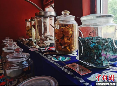 圖為唐卡繪畫礦物顏料展示?!?zhí)砀?攝