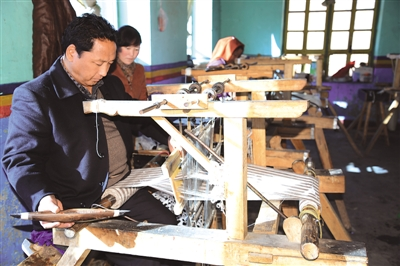 巴桑正在為學(xué)徒教授嗶嘰手工編織技藝。李文健 攝
