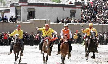 藏歷4月10日到28日,是江孜傳統(tǒng)的節(jié)日—達(dá)瑪節(jié),藏語意為跑馬射箭。據(jù)傳說江孜法王繞丹貢桑帕巴桑布,是薩迦王朝的內(nèi)務(wù)大臣,又是江孜法王,在群眾中頗有威望。帕巴白去世后,他的弟子每年做祭祀,以示紀(jì)念。后因戰(zhàn)亂,祭祀中斷。至藏歷火鼠年(公元1408年)繞丹貢桑帕任江孜法王,遵其父貢桑帕的遺囑,恢復(fù)祭祀。這一年藏歷4月10日至4月27日,繞丹貢桑帕為其祖父念經(jīng)祭祀,直到28日,開始進(jìn)行娛樂活動(dòng)。內(nèi)容主要是曬唐卡畫、宗教文藝活動(dòng)等。除此之外,還有角力、跑馬、拋石頭等娛樂活動(dòng)。這些活動(dòng),全由法王的部下、兵丁、傭人承辦。從這年開始,固定這段時(shí)間為每年一度的祭祀盛典節(jié)日。到了扎西繞丹帕(公元1447年)統(tǒng)轄江孜的時(shí)候,娛樂活動(dòng)更為豐富,除上述內(nèi)容外,還增加了跑馬射箭。于是流行為盛大的江孜達(dá)瑪節(jié)。