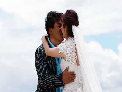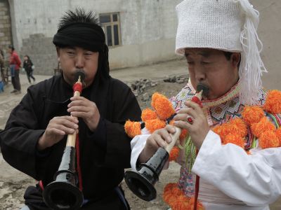 貴州貴陽苗族婚禮上新郎新娘裝...