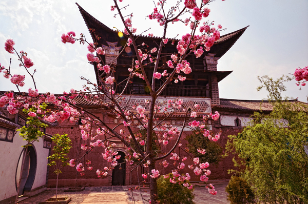 馬如驥舊居是馬家大院古建筑群當(dāng)中的典范,特色是"一碉兩院三門四閣五堂六天井"。它采用"六合同春"的布局,東西耳房、廳房同南面的主照壁構(gòu)成南院的"三坊一照壁",主房、東西廂房、大門和角樓則構(gòu)成北院的"四合五天井"。打開厚重大門,映入眼簾的是四個(gè)刻在大理石方框的大字"世守清真",顯示了主人虔誠的信仰。