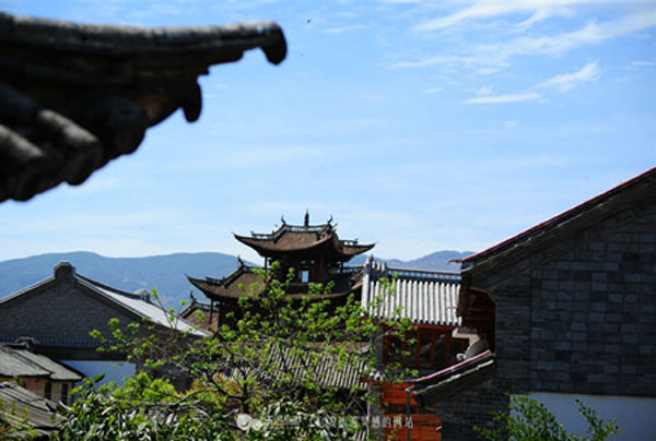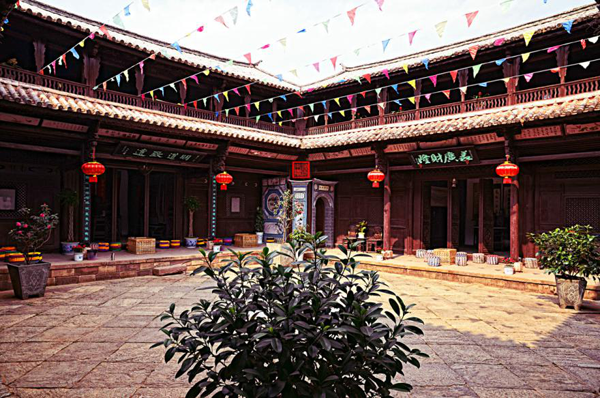 雖然經(jīng)過歲月侵蝕,但院落的每一個(gè)角落,無論是精心裝飾的門楣還是匠心獨(dú)具的花窗,盡管經(jīng)過了多少年的風(fēng)雨,依然令人感到當(dāng)年的氣魄和獨(dú)有的魅力。在馬如驥大院的二樓,那藻井的彩繪今天依然清晰美麗,有彩繪《三文筆》、《阿文學(xué)?!?、《雞足山莊嚴(yán)塔》、《上海街景》。特別是彩繪《上海街景》,被專家視為不可多得的珍貴資料,它不僅惟妙惟肖的再現(xiàn)了當(dāng)年十里洋場上海灘的風(fēng)華,還體現(xiàn)了馬幫商人的開放胸襟和開闊眼界,體現(xiàn)了對(duì)現(xiàn)代化生活的向往和對(duì)未來的憧憬。