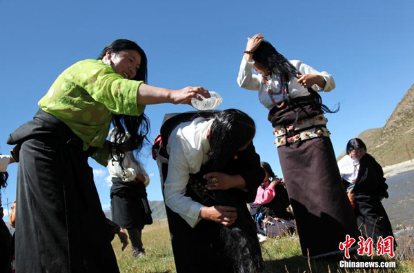 每年的夏末秋初,藏族同胞迎來一年一度的“沐浴節(jié)”?!般逶」?jié)”,藏語稱為“嘎瑪日吉”,為期7天。這項古老習(xí)俗已經(jīng)延續(xù)了800多年。西藏流傳民謠,“待到棄山星升起,清凈溫暖好沐浴?!币簿褪钦f,在“棄山星(金星)””照亮雪域高原的七天里,藏族民眾在星光照耀過的水流中沐浴,可祛除身體病痛、心理雜念,全年健康。