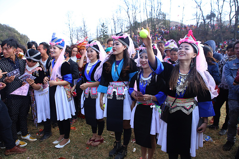由于在歷史上經(jīng)歷長時間、大范圍的遷徙,苗族文化形成了較強的環(huán)境適應(yīng)能力和流動變遷特征。節(jié)日作為民族文化的凝集點,慶祝方式和形態(tài)也處于動態(tài)的演變和傳承之中。在大布紅的花山場,一個從老撾過來的苗族女子樂隊讓當?shù)氐拿缱迦烁械胶闷妗f著同樣的西部苗語,卻穿著略顯不同的衣服。她們排成一行,教人們一來一往地扔繡包,一時間圍觀者無數(shù)。不消多久,女子樂隊手中的CD就在人群中銷售一空。