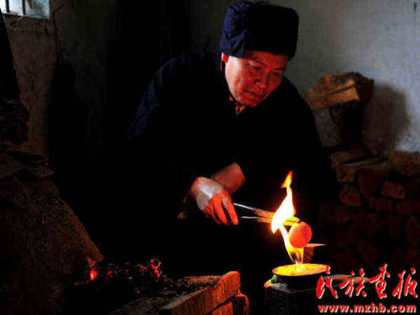 莫師傅正在精心制作笙斗