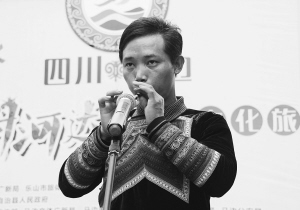 現(xiàn)年41歲的阿西日哈,是四川馬邊彝族自治縣民建鎮(zhèn)燈桿堡村的村民。這位多才多藝的彝族漢子不僅會(huì)吹奏木葉、草葉,而且精通月琴、馬布,還會(huì)吹奏葫蘆絲和笛子,可以稱得上是一位全能樂器手。令人驚訝的是,這些樂器幾乎都是阿西日哈自學(xué)的。