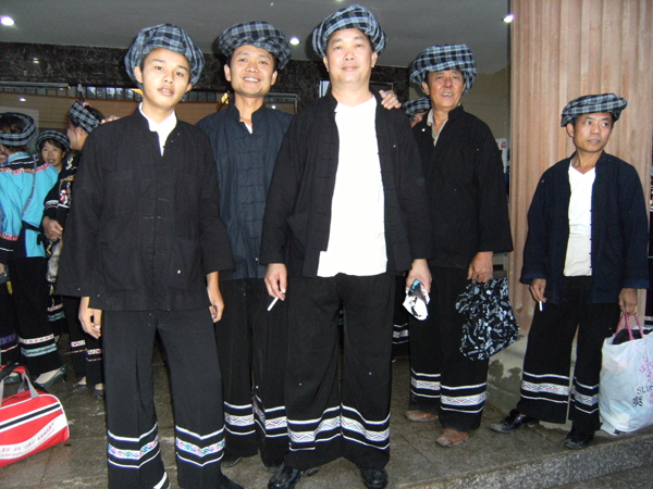 西南地區(qū)的服飾分布地區(qū)包括貴州省黔南布依族苗族自治州羅甸,黔西南州望謨、冊(cè)亨、貞豐、安龍、興義、興仁、安順市的鎮(zhèn)寧、關(guān)嶺、紫云三縣的南部以及云南省羅平等縣(市),基本上都屬于布依語(yǔ)第一土語(yǔ)區(qū)。這個(gè)地區(qū)婦女普遍穿大襟衣、長(zhǎng)褲腳。衣服的盤(pán)肩、袖口、襟沿鑲有蘭干。褲腳為大褶邊,或藍(lán)色褲腳鑲一截青布和蘭干。衣服的長(zhǎng)短和褲腳的大小,各地區(qū)都不相同。冊(cè)亨一帶衣服較短,褲腳短小,包花格長(zhǎng)帕,胸頸掛彩珠項(xiàng)圈,手套玉石或骨制手鐲;望謨一帶青年婦女把花格帕折疊后纏戴;貞豐一帶的衣服較長(zhǎng),褲腳不折邊,青年和老年婦女基本相同,但青年婦女包的花帕形狀如牛角(人稱“牛角帕”);靠近北部地區(qū),衣褲都較長(zhǎng),而且不鑲蘭干,衣褲和帕子多為青色;安龍、興義一帶則多包白帕,衣褲亦不鑲蘭干;西南一帶地區(qū)衣褲已漸不鑲蘭干,但還穿自織的土布衣服,頭上還包花格帕,一些地區(qū)與漢族婦女裝束完全一樣了。