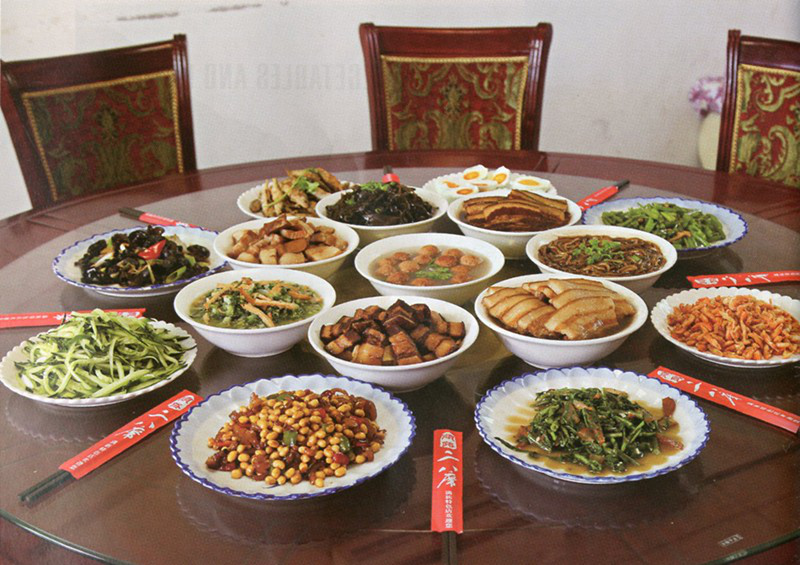 關(guān)于二八席的由來,在七道梁村是這樣流傳的:當(dāng)年,薩爾滸大捷后,努爾哈赤要求八旗各拿出一盤和一碗本旗最好的吃食,以供設(shè)宴擺席之用。于是,八旗紛紛響應(yīng),八個(gè)盤、八個(gè)碗的特色菜肴湊在一起,便有了二八席。