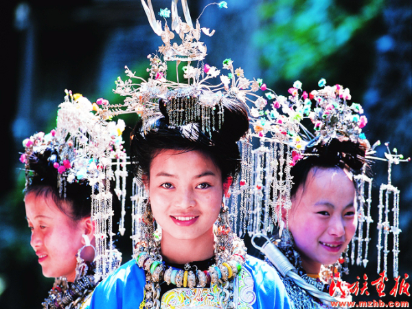 貴州榕江侗族少女頭飾 盧現(xiàn)藝攝影 引自民族畫(huà)報(bào)