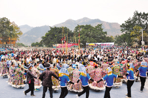 2012年12月18日,貴州省榕江縣2000多名少數(shù)民族同胞盛裝出行,歡慶薩瑪節(jié)?!八_瑪”是侗族母系氏族社會時的女英雄,侗語意為“大祖母”。薩瑪節(jié)被譽為“侗族的婦女節(jié)”。2006年,侗族薩瑪節(jié)被列入第一批國家級“非遺”名錄。