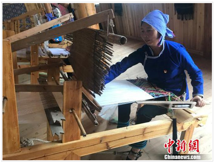 聽聞姐姐在這里織錦每月可拿到3000多元的收入,今年7月,此前在廣東務(wù)工的文坡村二組村民龍練霞干起了這份家門口的工作,再也不想外出了?!凹确奖阏疹櫦胰?,又可以抽空干點農(nóng)事?!苯衲?0多歲的龍練霞說。和她一樣,看到侗錦的銷路慢慢打開了,村里許多在外務(wù)工的年輕人也紛紛返鄉(xiāng),拾起祖輩們的老手藝。