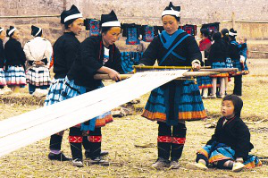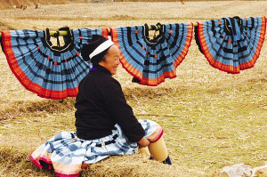 晾曬盛景。白褲瑤女人衣上的神秘之藍,就是這樣經(jīng)過蠟染晾曬而成的
