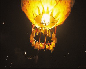 燃放“貢菲”,需要多人幫忙。首先要用火把點燃牛油等制成的燃料,讓孔明燈內(nèi)充滿熱氣,等到它直立向上沖的時候,大家一齊放手,孔明燈就飛向高空。隨著燈底圓口處的明火繼續(xù)燃燒,孔明燈越飛越高,燈內(nèi)攜帶的鞭炮不時發(fā)出噼噼啪啪的響聲,仿佛在祝福傣鄉(xiāng)人民吉祥如意、幸福安康。