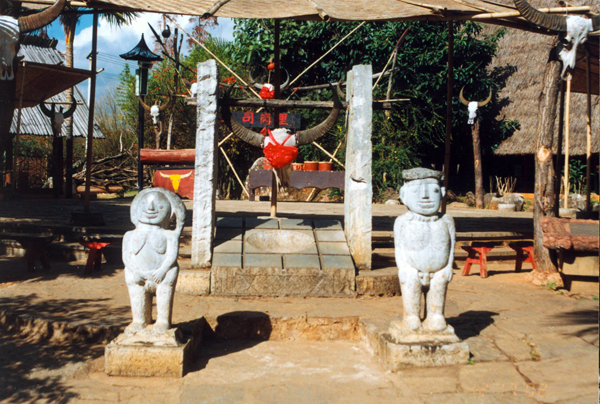 美術(shù):佤族的雕刻和繪畫藝術(shù)比較粗放,刻畫藝術(shù)大都表現(xiàn)在房子、生活用品、木鼓、牛角叉等方面,塑造形象大多是簡單的人像、馬、牛頭、麂子、燕子等。在印染編織工藝方面,印染基本色調(diào)有紅、黑、黃、白色,經(jīng)過搭配、織出方格花形、三角形圖案。