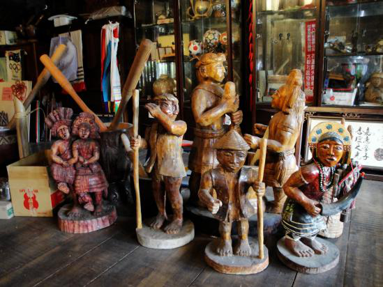雕刻。高山族的雕刻以木雕和石雕為主,金屬雕刻是現(xiàn)代才出現(xiàn)的。排灣和魯凱兩個(gè)族群的雕刻工藝最為發(fā)達(dá),也最具特色。木板雕刻的紋樣與石壁雕刻大致相似,只是木板雕刻多施色彩,少則紅、白兩種色,多則加上黃、橙、藍(lán)、綠色不等,鮮艷亮麗,引人注目。一般住屋內(nèi)外都有雕刻,貴族的住屋裝飾尤其突出。立柱和壁板雕刻的主題多為敘述家族神話、傳說起源或表彰家族的特殊事跡。雕刻的題材以神話傳說、狩獵生活、祖靈像為主;木雕以人像、人頭、蛇紋、野豬和鹿紋為主;其他還有重圓紋、太陽(yáng)紋、網(wǎng)形、風(fēng)車形,四葉形、人體生殖器等等。這些題材與排灣人的原始宗教、神話內(nèi)容有密切的關(guān)聯(lián)。住屋的木雕取材于質(zhì)地堅(jiān)硬的樟木、臺(tái)灣櫸、二葉松等喬木,而木桶、木臼、木椅等器物,除了堅(jiān)硬木材外,也選擇樟木,烏心石等。至于木匙、煙斗、木梳則喜歡用月橘之類的材質(zhì)。