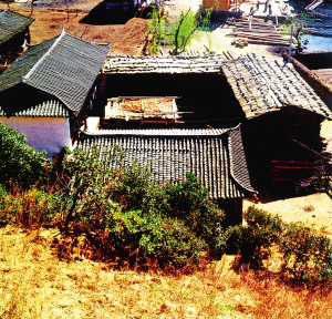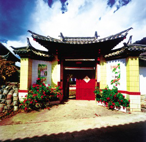 束河、沙河古村鎮(zhèn)到處都是納西族的田園式庭院。大門的裝飾與圍墻和屋脊的裝飾相呼應(yīng),庭院里種了許多植物,高的果樹,矮的花草,就像一個小花園,和田間彌漫著的野薔薇都散發(fā)著令人陶醉的幽香。
