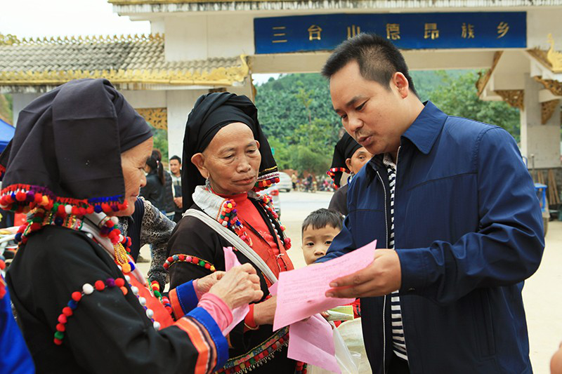 三臺山徳昂族鄉(xiāng)鄉(xiāng)長楊愛明和德昂族群眾參加農(nóng)業(yè)科技推廣活動