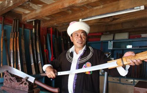 景頗族家家戶戶有長(zhǎng)刀,景頗族男人身不離刀。長(zhǎng)刀是男人之魂。
