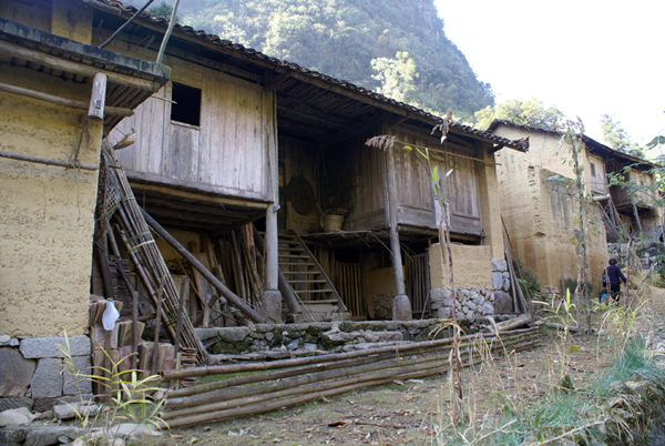 干欄石屋(亦稱干欄石樓)為進入20世紀后多數(shù)農(nóng)民的住屋,是凹形矮腳石木結(jié)構干欄式,因墻基用石頭砌成而得名。上層住人,下層圈養(yǎng)牲畜及堆放農(nóng)具和柴草,可以防潮。整棟房為石基、泥墻、木柱、瓦頂。每棟以用銜條數(shù)和間數(shù)多少區(qū)別大小。從屋頂?shù)轿蓍軆蛇?,?3根銜條的叫檐十三,用15根的叫檐十五,以此類推。檐十三屋內(nèi)較窄,不便擺放家具雜物;檐十九較寬敞,但屋檐低矮,室內(nèi)陰暗。以檐十七居多,屋里寬敞,通風采光也良好。多為三、五、七、九間,大門居中,兩邊對稱。