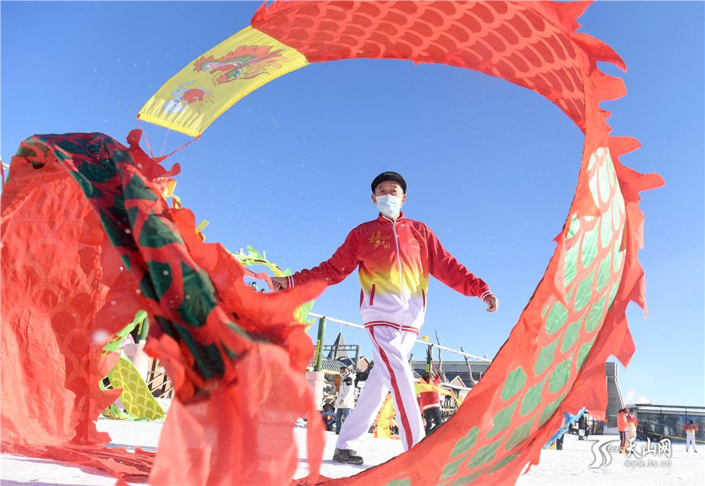 12月3日,烏魯木齊市民在絲綢之路冰雪風(fēng)情節(jié)上舞龍。