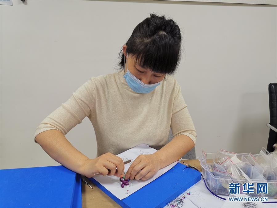工藝師孫亞杰(左)通過(guò)空中課堂為內(nèi)蒙古各地的近500名婦女講授盤(pán)扣制作工藝。