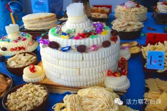 美味之一奶食:草原上的食品之首便是奶食。況且察哈爾人民在歷史上為宮廷專供“奶食”的部落,所制作的奶食品品種豐富、名目繁多,做法千姿百態(tài)。奶食在蒙語(yǔ)中稱"查干意德(ChagaanYidee)",俗稱白色食品。奶食大體可分為液態(tài)奶食、固態(tài)奶食兩類。液態(tài)奶食有鮮奶、淖勞日、爵亥、白油、酸油液、黃油、酸油渣、乳清、酸奶、熟酸奶、酸乳等。固態(tài)奶食有奶皮、奶豆腐、奶雜子、松葫蘆、酸奶酪。奶食品中含有大量的氨基酸、蛋白質(zhì)、油脂、微量元素,對(duì)人體機(jī)能有著不可缺少的營(yíng)養(yǎng)成分,增強(qiáng)免疫力,有保健作用。奶食也被視為珍品,每逢拜年、祝壽、招待賓客、喜慶宴會(huì)等首先以品嘗奶食、敬獻(xiàn)奶酒為最美好的祝愿,這是一種神圣的禮節(jié)。