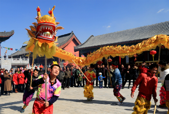 屆時(shí)在廟里還要敬龍牌及各路神仙,并且唱大戲、逛九曲、壘旺火,家家戶(hù)戶(hù)請(qǐng)親待客、邀朋會(huì)友,共享“二月二”盛會(huì)的歡樂(lè),一同祈求“龍王爺”保佑五谷豐登、人丁興旺,流露出人們對(duì)龍的無(wú)限崇敬和虔誠(chéng)的信仰。