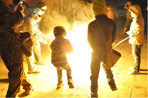 不到黃昏,鞭炮聲就響起來(lái)了。新生兒的父親點(diǎn)燃火把后,孩子們迫不及待地拿著小火把和松明粉,跑來(lái)跑去燒新生兒的的各種親戚,大人們樂(lè)呵呵地接受孩子們噴灑過(guò)來(lái)的火焰,并一致說(shuō)著很吉祥的祈愿祝福語(yǔ)?!皬拇嘶逇獠辉趪D!”、“一年更比一年好呀!”、“紅紅火火又一年”。男女老少在火把樹(shù)下吃喝玩樂(lè),其樂(lè)融融。糖、炒蠶豆、梨、蘋(píng)果等被大家傳來(lái)傳去,新生父親挨個(gè)向親友敬酒。親友鄰居喝著喜酒,一致祝福新生兒安康成長(zhǎng),將來(lái)富貴吉祥。