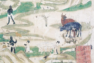 莫高窟第61窟《牧女獻糜》(五代)。敦煌研究院供圖